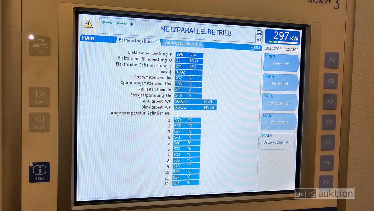 Motor: | Stamford J412GS-25 12-Zylinder, 862 kW (1.172 PS), U/min 1.500 |